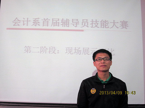 根据学院的部署,为了推动系辅导员职业化、专业化发展,提升辅导员职业技能和工作水平,会计系在2013年4月上旬开展首届辅导员职业技能大赛,4月9日下午在1号教学楼1207教室进行比赛第二阶段——现场展示评比。