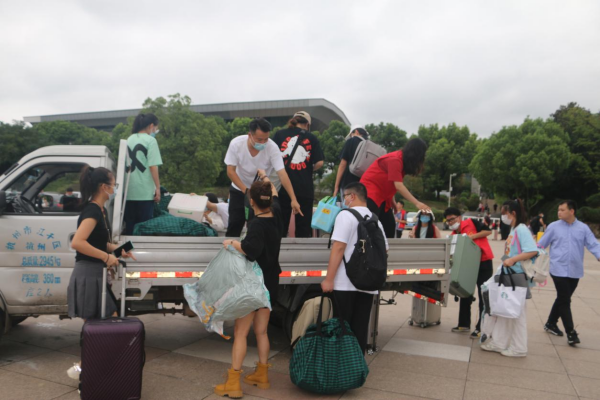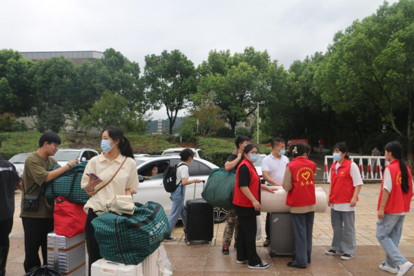 受台风天气影响,虽偶有阵雨落下,但报到现场依旧秩序井然,返校学生保持1米间隔距离,自觉佩戴口罩,有序排队,依次进行健康码、通信行程卡核验、体温测量等程序有序进入校园。学校学生处、保卫处、医务室等部门的工作人员分工协作、密切配合,以便捷的返校流程、贴心的叮嘱问候、温暖的人性化服务迎接每一位学子的到来。