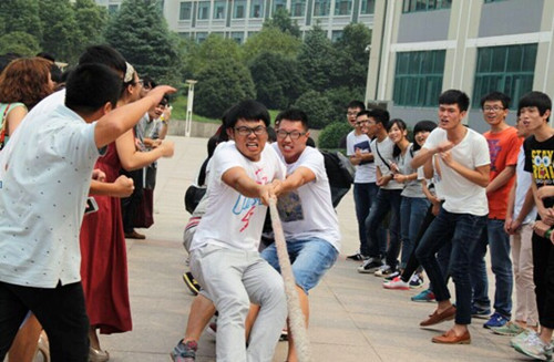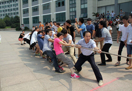 为了培养新生的团队协作精神,进一步增进了解,弘扬团结奋进的精神,商务系学生会于9月26、27日中午的时间在图书馆前成功举办了新生拔河比赛。