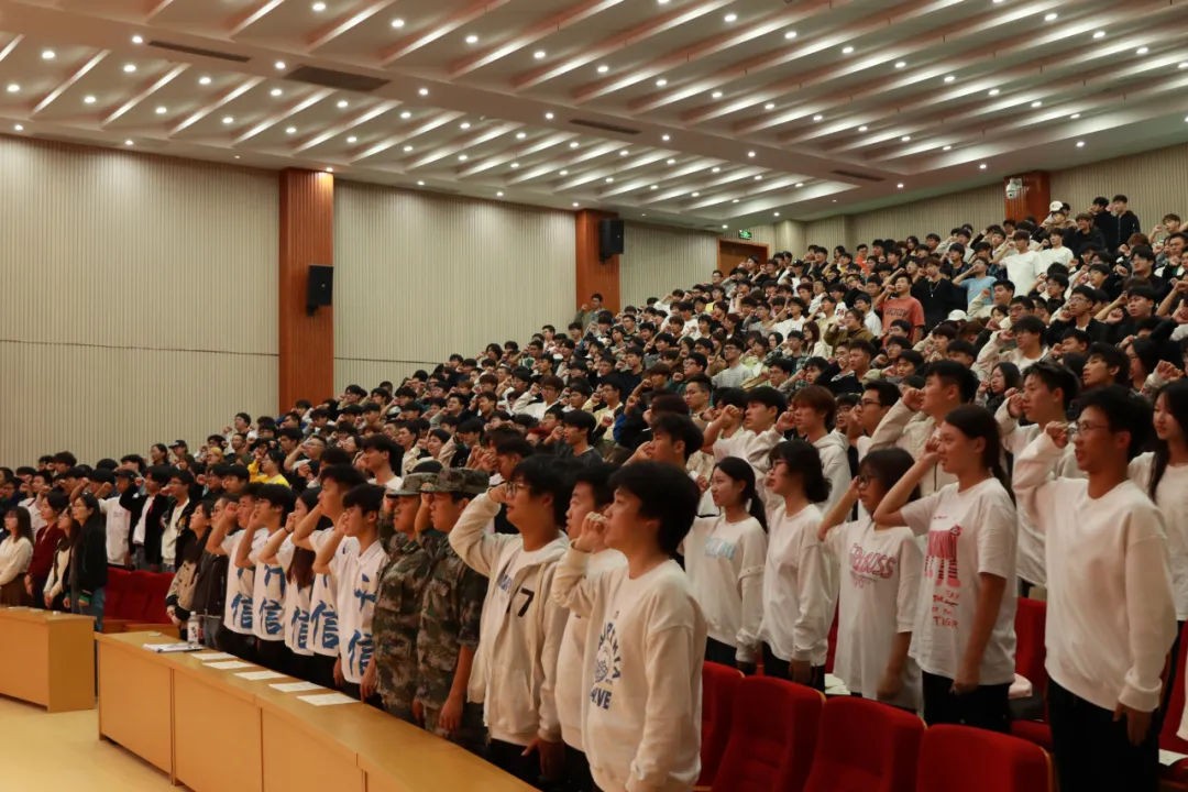 会议最后,全体2024级新生共同进行了“四无课堂”宣誓,承诺会为创建一个更加专注、有序、整洁的学习环境而努力。
