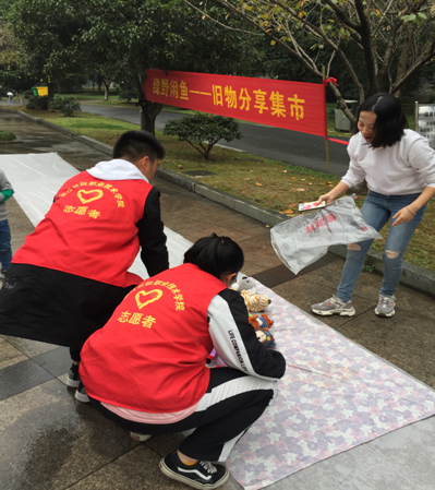 上午8时30分,志愿者抵达绿野春天小区后,积极投入到社区“绿野闲鱼”——闲置旧物分享活动中。志愿者学生协助小区业主悬挂横幅,场地清洁和布置,协助业主摊位物品摆放,维护活动场地秩序,确保活动能够井然有序地进行。在旧物分享活动中,志愿者同学们积极主动和小区居民进行交流,向大家介绍本次活动的意义,帮助有价值的旧物寻找到了新的主人。